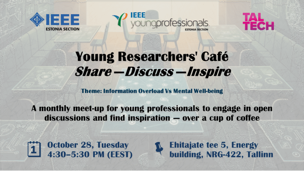 Welcome to the second edition of Young researcher’s cafe, which is a monthly, informal event organised for young professionals from TalTech and beyond. The theme of this session is related to the Mental Health Month in TalTech. The following is the rough agenda for October Edition!